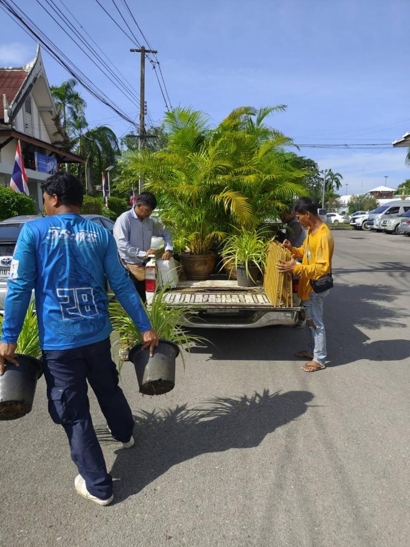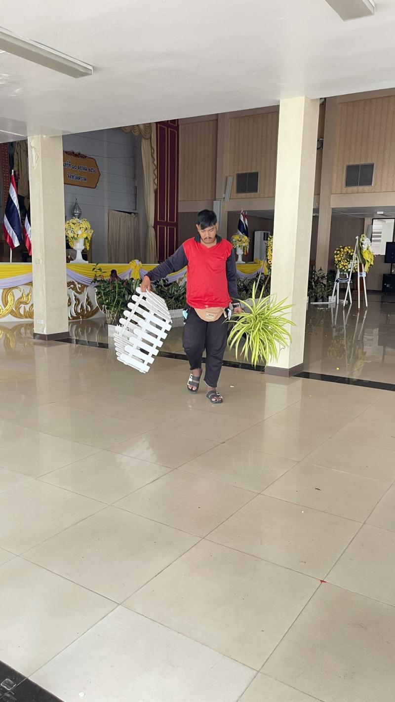 • การประดับและเก็บต้นไม้ตกแต่งเวทีบริเวณศาลาประชาคม
