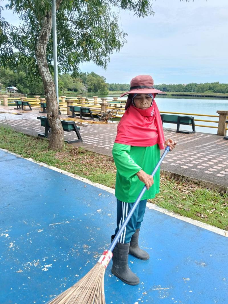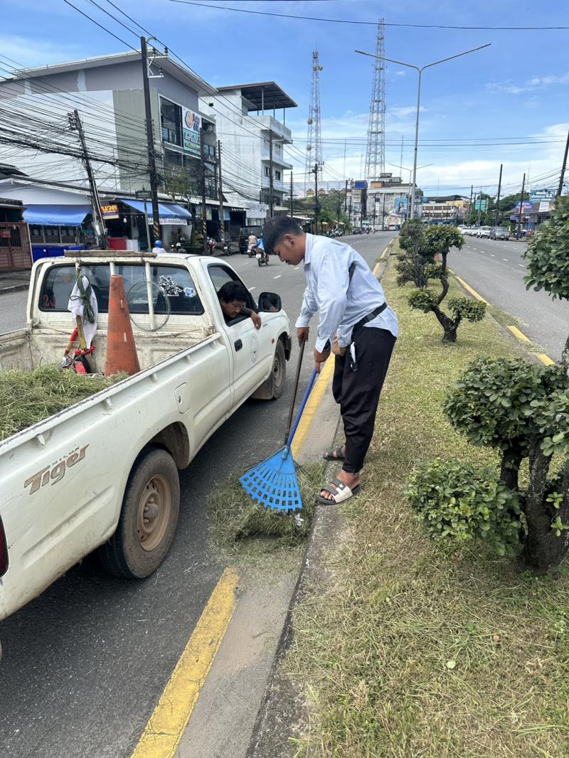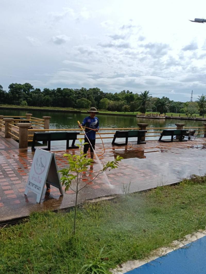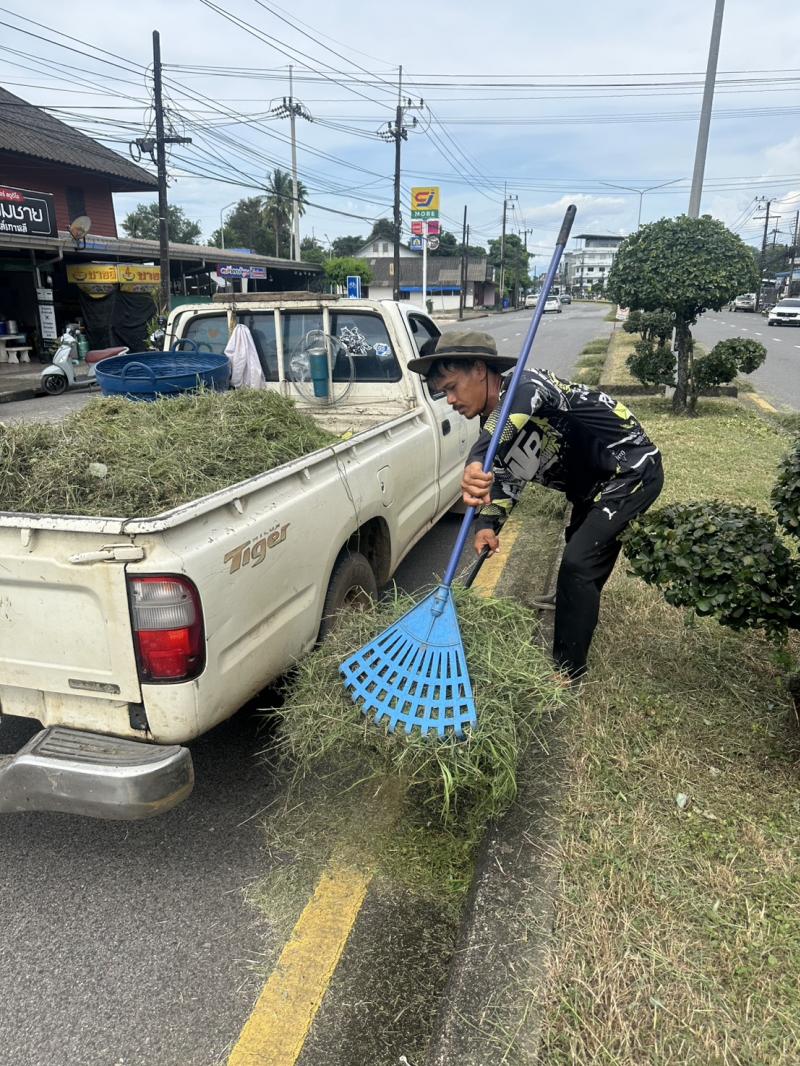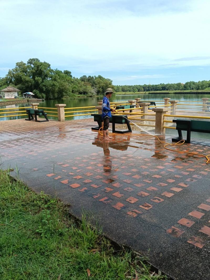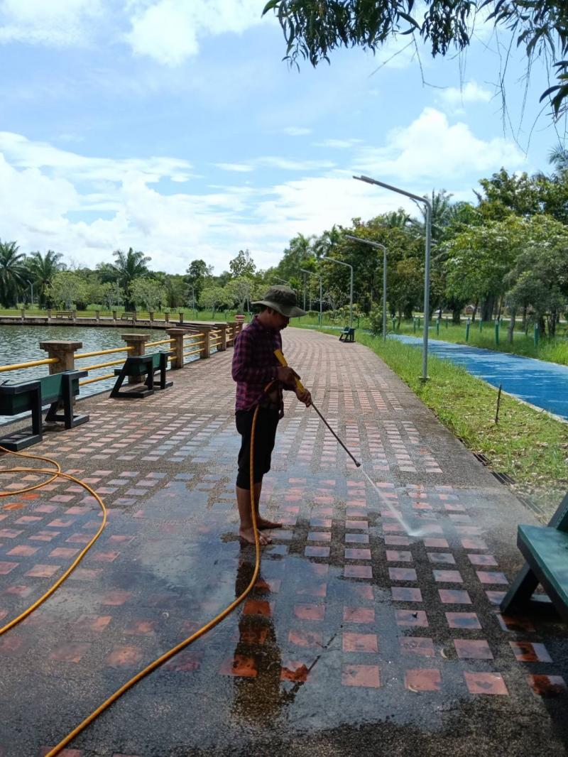 • การตัดหญ้าและทำความสะอาดในพื้นที่สวนสาธารณะเฉลิมพระเกียรติอย่างเข้มข้น ทั้งการตัดหญ้าหน้าห้องน้ำและป่าสมุนไพร, การล้างทางเดิน, และการทำความสะอาดห้องน้ำ