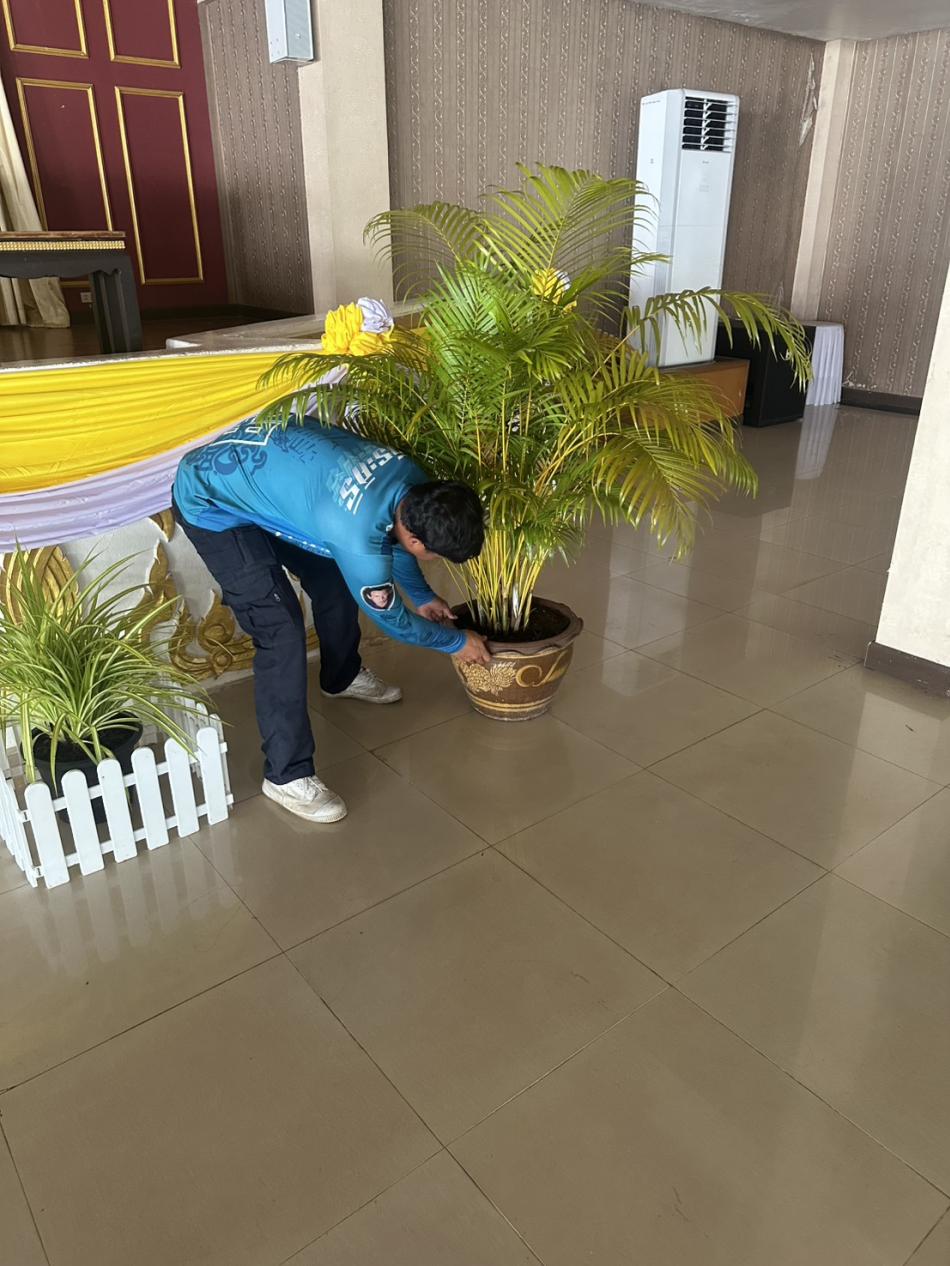 • การดูแลต้นไม้และกิ่งไม้ในพื้นที่สำคัญ เช่น การตัดต้นไม้บริเวณหน้าร้านอาหารนำโชค และการรานกิ่งที่ติดกับหลังคาจวน รวมถึงการตัดหญ้า/ตัดแต่งต้นเข็ม