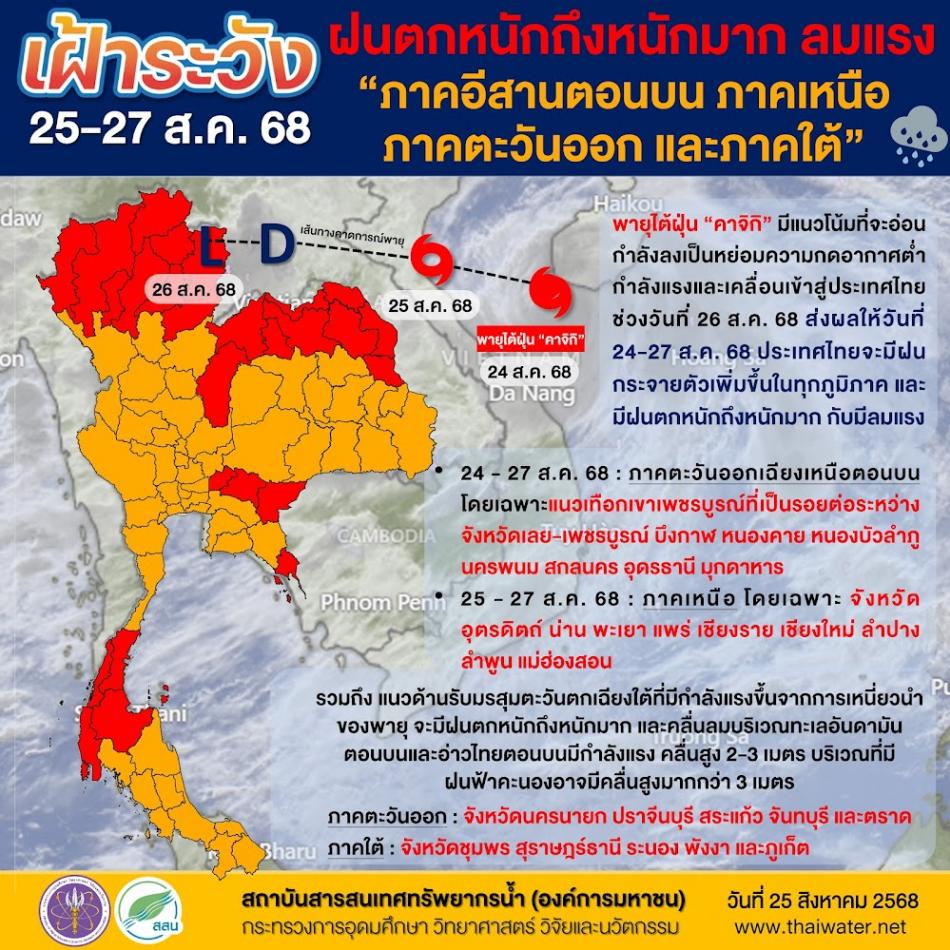 ประกาศเฝ้าระวังฝนตกหนัก – ลมแรง [25 สิงหาคม 2568]
