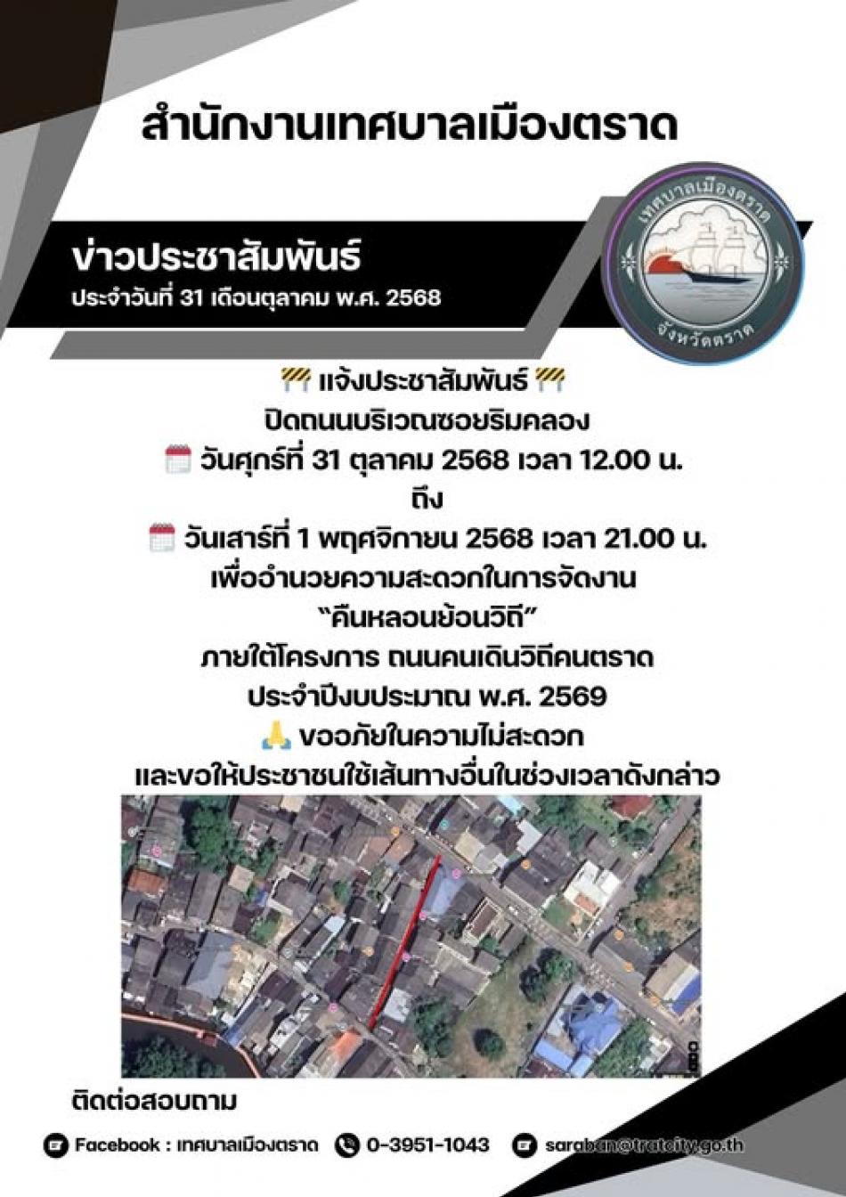 แจ้งประชาสัมพันธ์ ปิดถนนบริเวณซอยริมคลอง [31 ตุลาคม 2568]