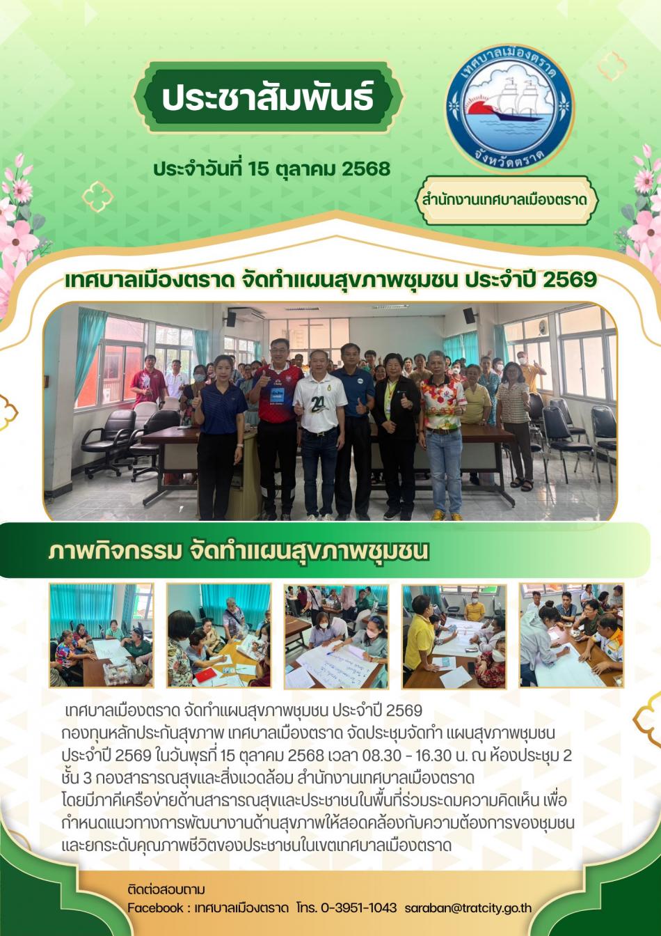 เทศบาลเมืองตราด จัดทำแผนสุขภาพชุมชน ประจำปี 2569 [15 ตุลาคม 2568]