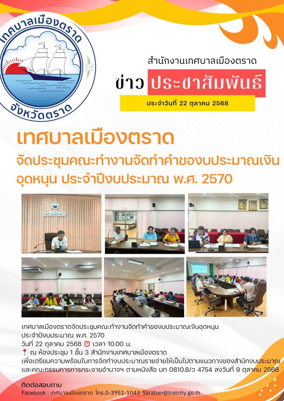 เทศบาลเมืองตราดจัดประชุมคณะทำงานจัดทำคำของบประมาณเงินอุดหนุน ประจำปีงบประมาณ พ.ศ. 2570 [22 ตุลาคม 2568]