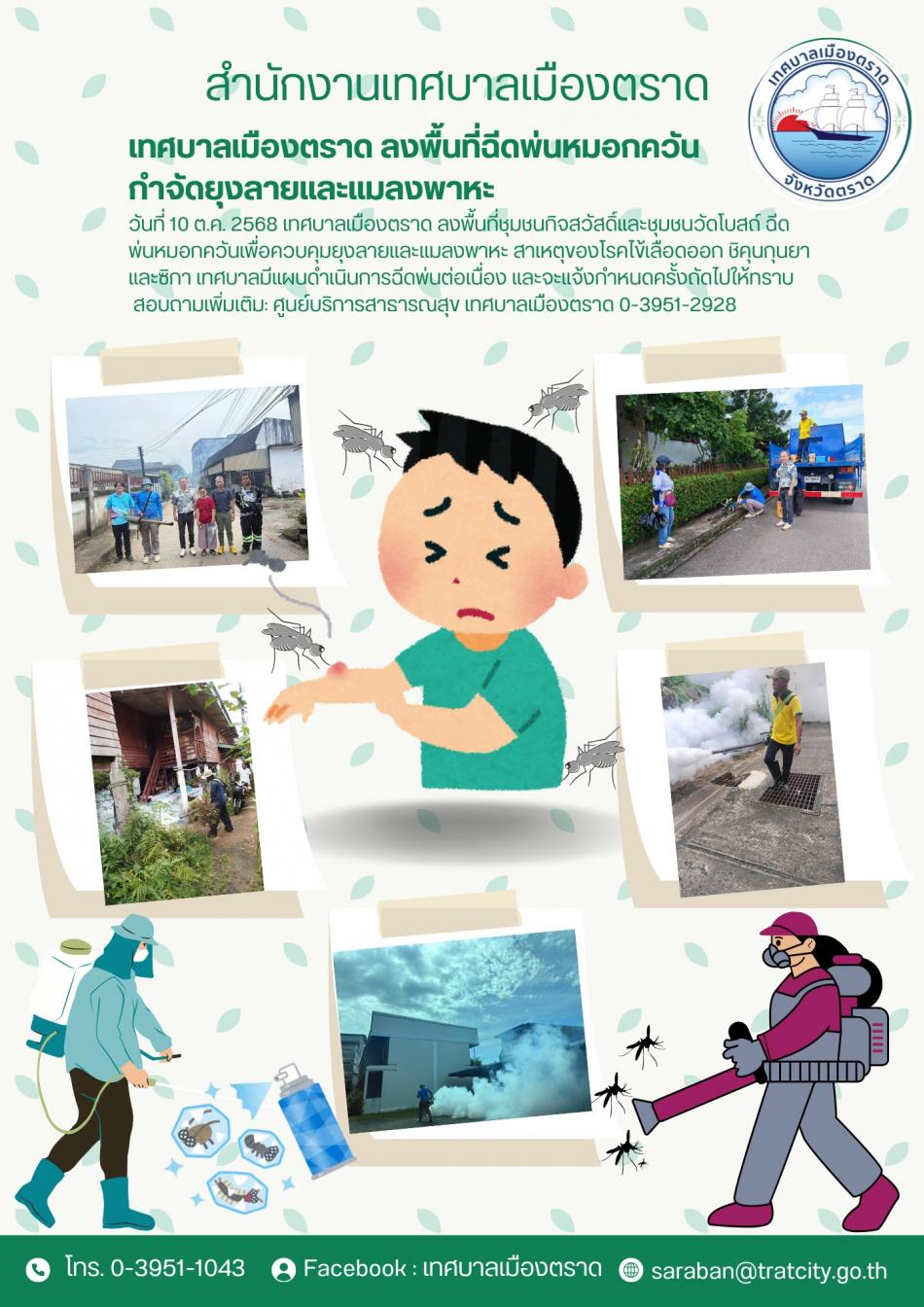 เทศบาลเมืองตราด ลงพื้นที่ฉีดพ่นหมอกควัน กำจัดยุงลายและแมลงพาหะ [10 ตุลาคม 2568]