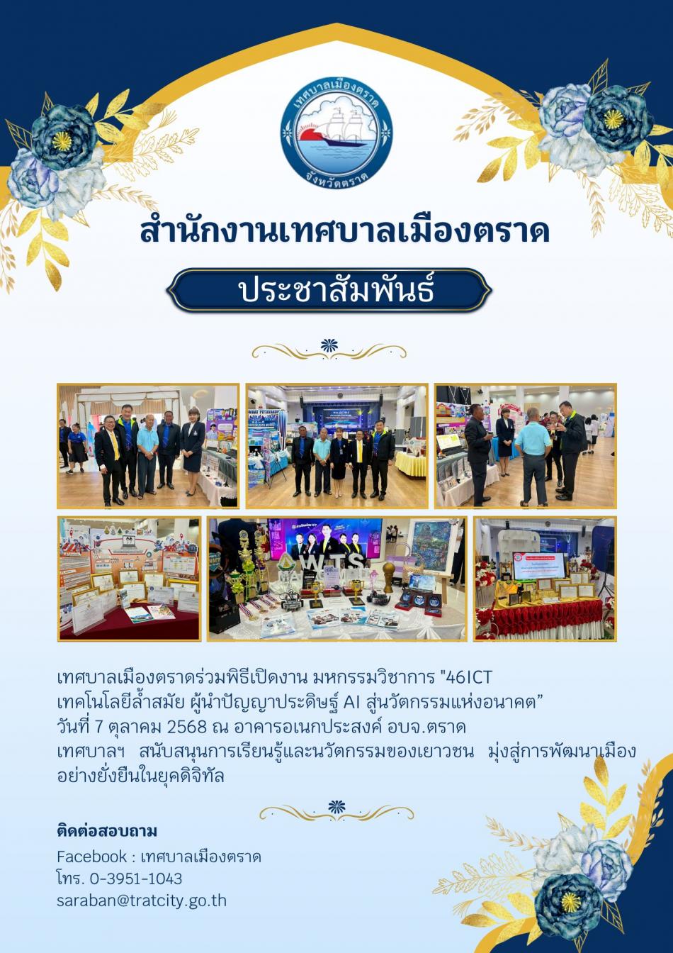 เทศบาลเมืองตราดร่วมพิธีเปิดงาน มหกรรมวิชาการ "46ICT เทคโนโลยีล้ำสมัย ผู้นำปัญญาประดิษฐ์ AI สู่นวัตกรรมแห่งอนาคต” [7 ตุลาคม 2568]