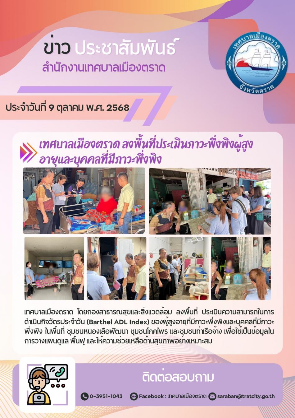 เทศบาลเมืองตราด ลงพื้นที่ประเมินภาวะพึ่งพิงผู้สูงอายุและบุคคลที่มีภาวะพึ่งพิง [9 ตุลาคม 2568]
