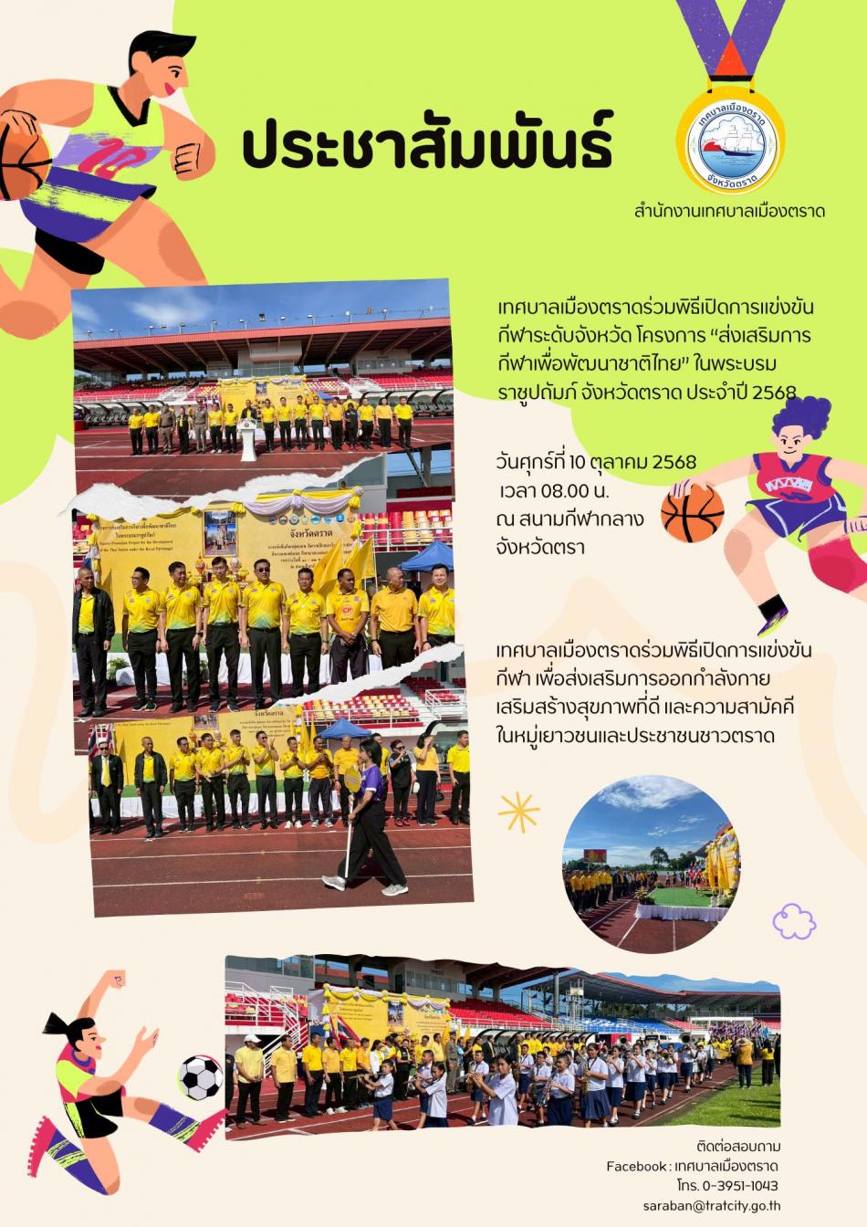 เทศบาลเมืองตราดร่วมพิธีเปิดการแข่งขันกีฬาระดับจังหวัด โครงการ “ส่งเสริมการกีฬาเพื่อพัฒนาชาติไทย” ในพระบรมราชูปถัมภ์ จังหวัดตราด ประจำปี 2568 [10 ตุลาคม 2568]
