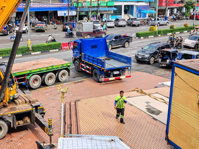 รายละเอียด : เมื่อวันที่ 17 กันยายน 2568 นายสุรศักดิ์ ภูติภัทร์ นายกเทศมนตรีเมืองตราด ได้มอบหมายให้ นายประสาน พงษ์พานิช รองเทศมนตรี, นายสรพงษ์ ขันทอง รองเทศมนตรี, นายพงศ์อมร คชศิลา สมาชิกสภา และเจ้าหน้าที่เทศบาล ร่วมกัน ย้ายอาคารศูนย์บริการร่วมจังหวัดตราด (เดิม) ออกจากพื้นที่บริเวณหน้าตลาดศูนย์การค้า การดำเนินการครั้งนี้มีเป้าหมายเพื่อ ปรับปรุงภูมิทัศน์เมืองให้เป็นระเบียบเรียบร้อย เพิ่มความสวยงาม และความสะดวกสบายแก่ประชาชนผู้มาใช้พื้นที่สาธารณะ รวมถึงช่วยเพิ่มทัศนียภาพโดยรอบให้มีความ โปร่ง โล่ง และปลอดภัย มากยิ่งขึ้น ทั้งนี้ นายกเทศมนตรีเมืองตราดให้ความสำคัญกับการพัฒนาพื้นที่สาธารณะอย่างต่อเนื่อง เพื่อสร้างสภาพแวดล้อมที่ดีแก่ประชาชน และจะเร่งดำเนินการในทุกขั้นตอนให้แล้วเสร็จอย่างรวดเร็ว โดยคำนึงถึงความสะดวกของประชาชนเป็นหลัก