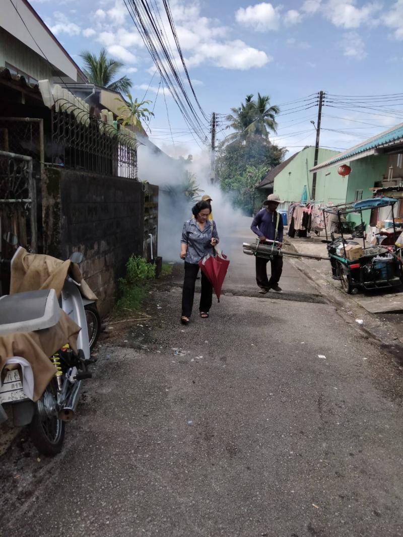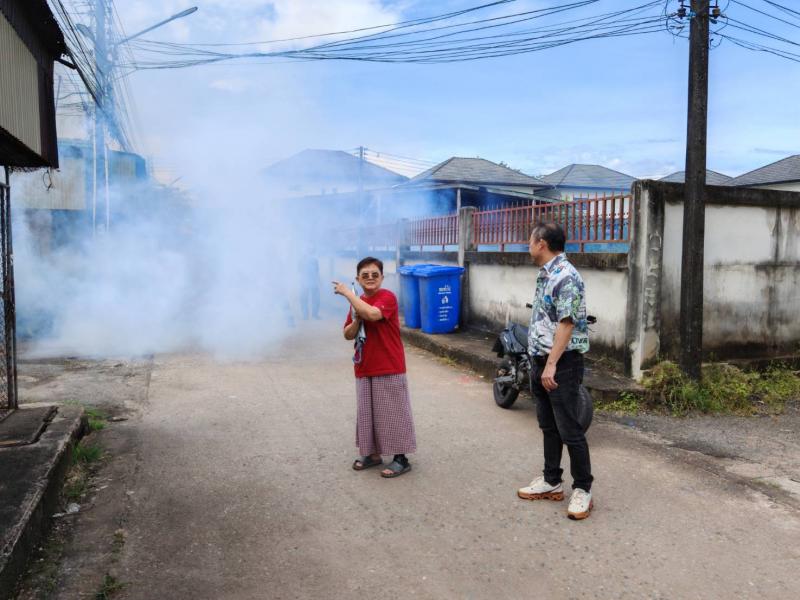เทศบาลเมืองตราด ลงพื้นที่ฉีดพ่นหมอกควัน กำจัดยุงลายและแมลงพาหะ