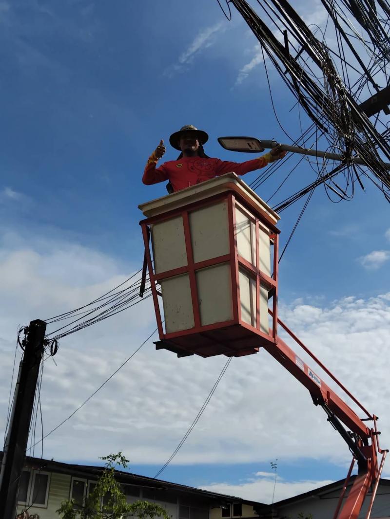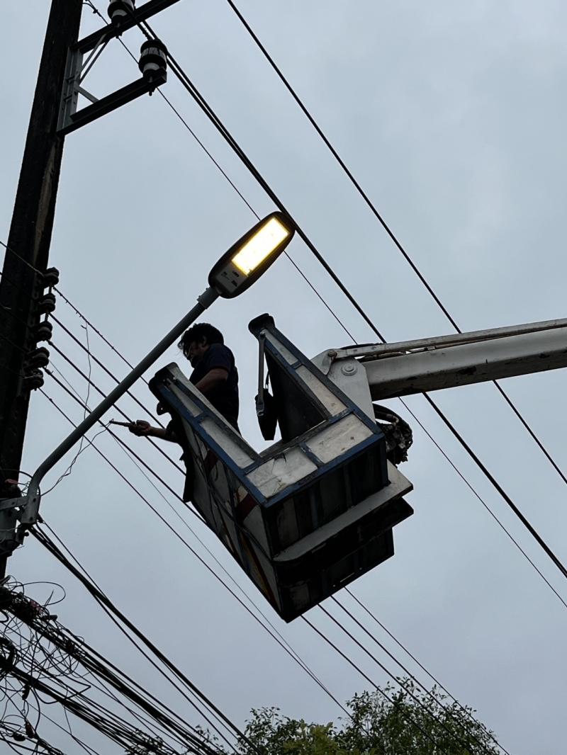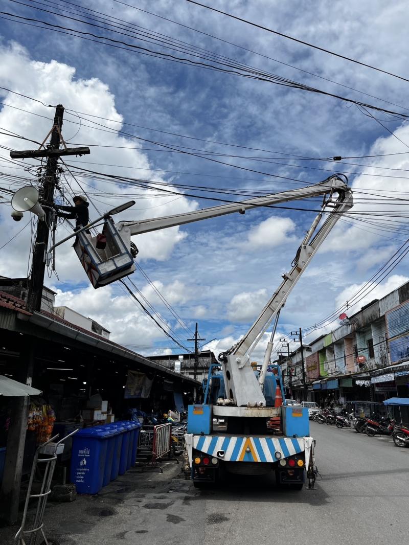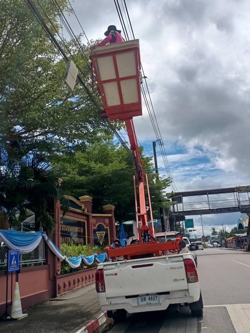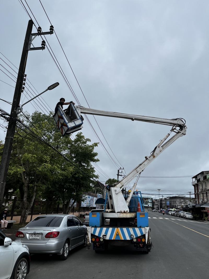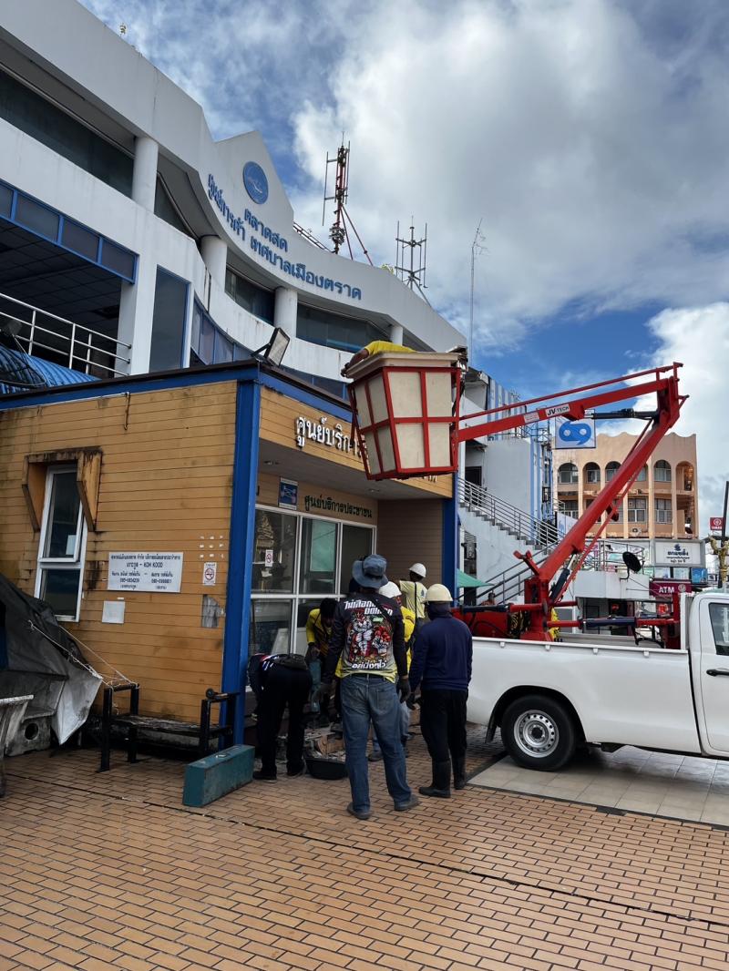 เทศบาลเมืองตราด ซ่อมแซมและตรวจสอบไฟฟ้าสาธารณะทั่วเขตเทศบาล