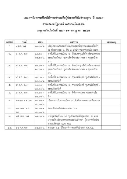 ชื่อเรื่อง : แจ้งประชาสัมพันธ์ เทศบาลเมืองตราด ตามมติคณะรัฐมนตรี เมื่อวันที่ ๑๗ กันยายน ๒๕๖๗ ให้ผู้ประสบภัยในพื้นที่เทศบาลเมืองตราดยื่นแบบคำขอรับความช่วยเหลือผ่านช่องทางดังต่อไปนี้