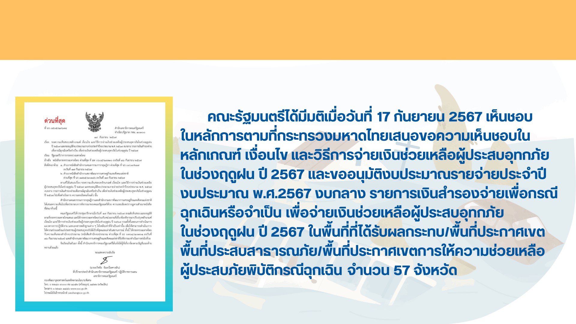 รายละเอียด : ๑. ยื่นคำร้อง Online https://flood67.disaster.go.th