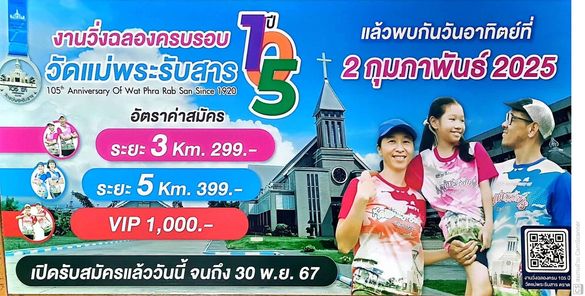 แจ้งประชาสัมพันธ์ งานวิ่งฉลองครบรอบ ๑๐๕ ปี วัดแม่พระรับสาร เปิดรับสมัครวิ่ง ตั้งแต่บัดนี้ - ๓๐ พฤศจิกายน ๒๕๖๗
