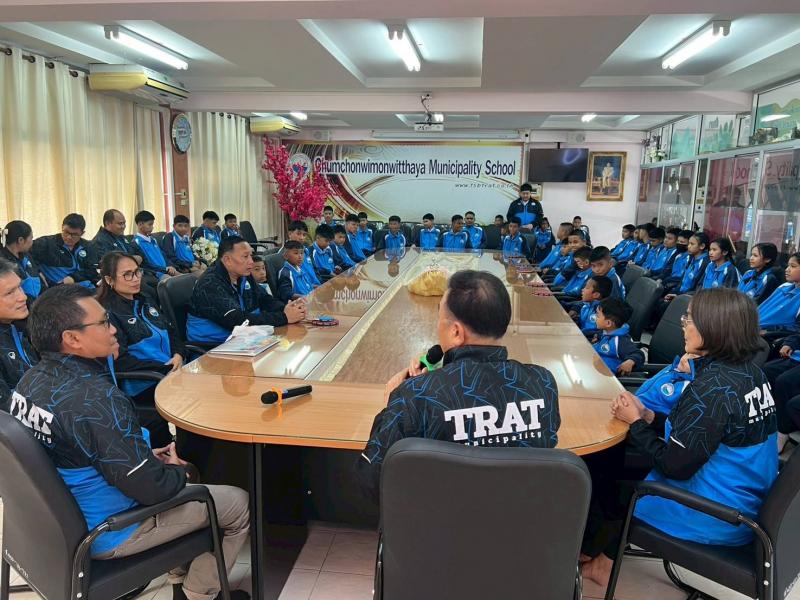 รายละเอียด : เมื่อวันที่ 5 พฤศจิกายน 2568 นายสุรศักดิ์ ภูติภัทร์ นายกเทศมนตรีเมืองตราด พร้อมคณะผู้บริหาร ได้นำทีมลงพื้นที่มอบชุดกีฬาและกล่าวให้โอวาทแก่นักกีฬาตัวแทนเทศบาลเมืองตราด