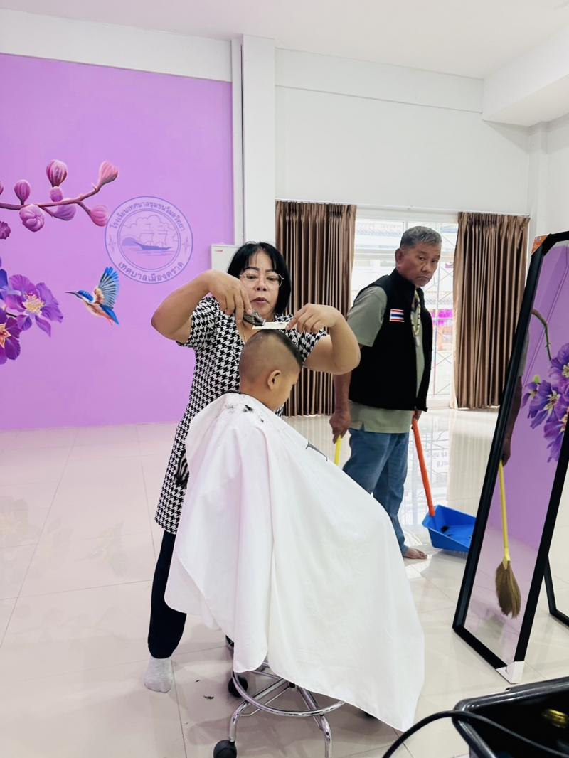 กิจกรรมชุมชนเคลื่อนที่ บริการตัดผมเด็กนักเรียน ต้อนรับเปิดเทอม
