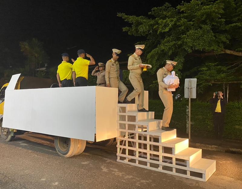 รายละเอียด : วันที่ ๑ กรกฎาคม ๒๕๖๗ นายณัฐพงษ์ สงวนจิตร ผู้ว่าราชการจังหวัดตราด นายเกรียงไกร ปัญญาพงศธร นายอำเภอเมืองตราด และส่วนราชการที่เกี่ยวข้องซ้อมเสมือนจริง พิธีพลีกรรมตักน้ำจากแหล่งน้ำศักดิ์สิทธิ์ จังหวัดตราด เพื่อจัดทำพระพุทธมนต์ศักดิ์สิทธิ์ งานเฉลิมพระเกียรติพระบาทสมเด็จพระเจ้าอยู่หัว เนื่องในโอกาสมหามงคลเฉลิมพระชนมพรรษา ๖ รอบ ๒๘ กรกฎาคม ๒๕๖๗ บริเวณแหล่งน้ำศักดิ์สิทธิ์ น้ำตกธารมะยม อำเภอเกาะช้าง จังหวัดตราด หลังจากเชิญน้ำศักดิ์จากฝั่งอำเภอเกาะช้างถึงฝั่งอำเภอแหลมงอบ ก่อนที่มีการจัดขบวนเชิญน้ำศักดิสิทธิ์โดยรถบุษบก โดยทางรถยนต์ไปยังศาลหลักเมืองตราดเพื่อจัดขบวนเชิญน้ำศักดิ์สิทธิ์ฯ (เดิน) ต่อไปยังพระอุโบสถ วัดโยธานิมิต พระอารามหลวง อำเภอเมืองตราดซึ่งเป็นสถานที่จัดพิธีจัดทำน้ำพระพุทธมนต์ศักดิ์สิทธิ์ ทั้งนี้เพื่อให้การจัดพิธีจัดทำน้ำพระพุทธมนต์ศักดิ์สิทธิ์ ในวันที่ ๗ กรกฎาคม ๒๕๖๗ เป็นไปด้วยความเป็นระเบียบเรียบร้อย สวยงาม และสมพระเกียรติ จึงได้มีซ้อมเสมือนจริงพิธีพลีกรรมตักน้ำจากแหล่งน้ำศักดิ์สิทธิ์จังหวัดตราด เพื่อประกอบพิธีจัดทำพระพุทธมนต์ศักดิ์สิทธิ์ในครั้งนี้ขึ้น เทศบาลเมืองตราด นายสุรศักดิ์ ภูติภัทร์ นายกเทศมนตรีเมืองตราด พร้อมด้วยผู้ช่วยผู้บริหาร หัวหน้าส่วนราชการ และเจ้าหน้าที่ผู้เกี่ยวข้อง เข้าร่วมพิธีดังกล่าว