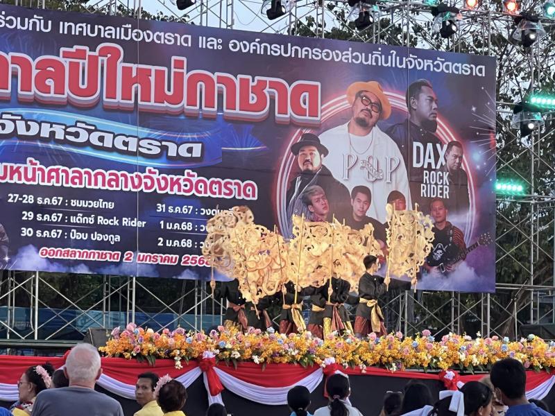 รายละเอียด : วันที่ ๒๗ ธันวาคม ๒๕๖๗ เวลา ๑๙.๐๐ น. บริเวณสนามหน้าศาลากลางจังหวัดตราด นายณัฐพงษ์ สงวนจิตร ผู้ว่าราชการจังหวัดตราด เป็นประธานเปิดงาน เทศกาลปีใหม่-กาชาด จังหวัดตราด ประจำปี ๒๕๖๘ ซึ่งทางจังหวัดตราด ร่วมกับเทศบาลเมืองตราด สำนักงานเหล่ากาชาดจังหวัดตราด และส่วนราชการต่าง ๆ ตลอดจนองค์กรปกครองส่วนท้องถิ่นในจังหวัดตราดร่วมกันจัดขึ้น สำหรับการจัดงาน เทศกาลปีใหม่-กาชาด จังหวัดตราด ประจำปี ๒๕๖๘ จัดขึ้นในระหว่างวันที่ ๒๗ ธันวาคม ๒๕๖๗ - ๒ มกราคม ๒๕๖๘ เทศบาลเมืองตราด นายสุรศักดิ์ ภูติภัทร์ นายกเทศมนตรีเมืองตราด นำผู้ช่วยผู้บริหาร สมาชิกสภาเทศบาลฯ หัวหน้าส่วนราชการ และพนักงานเทศบาล เข้าร่วมพิธีดังกล่าว