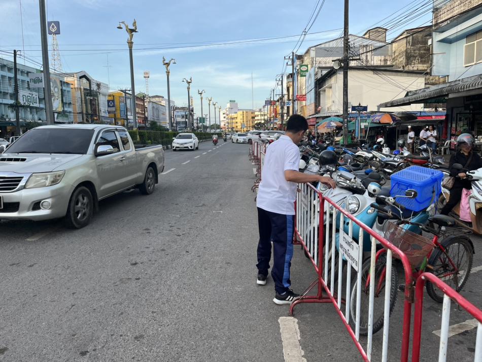 • เก็บแผงของ งานธงฟ้า และจัดระเบียบแผงค้า ตรวจสอบรถเร่จำหน่ายสินค้า บริเวณหน้าตลาดไร่รั้ง