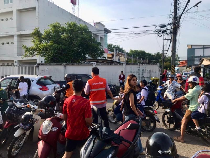 เทศบาลเมืองตราด ลงพื้นที่อำนวยความสะดวกด้านการจราจรบริเวณโรงเรียนเทศบาลชุมชนวิมลวิทยา