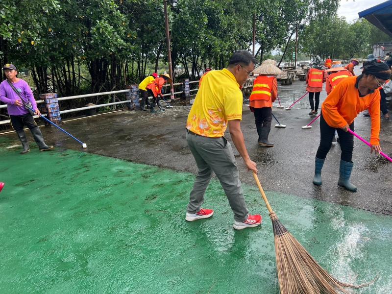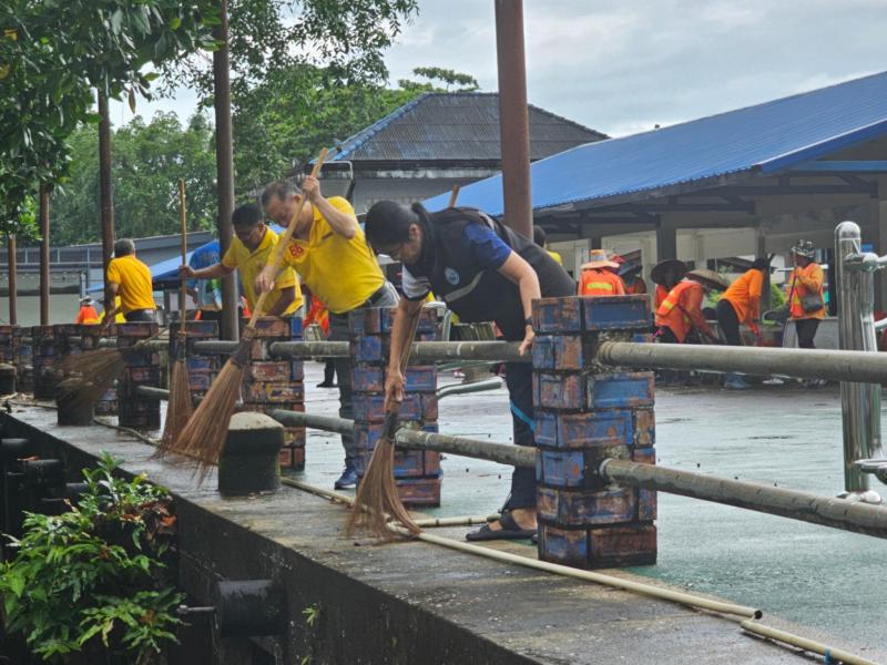 รายละเอียด : วันที่ ๗ สิงหาคม ๒๕๖๗ เวลา ๑๓.๓๐ น. นายสุรศักดิ์ ภูติภัทร์ นายกเทศมนตรีเมืองตราด พร้อมด้วยผู้ช่วยผู้บริหาร สมาชิกสภาเทศบาล หัวหน้าส่วนราชการ เจ้าหน้าที่ผู้เกี่ยวข้อง และอาสาสมัครท้องถิ่นรักษ์โลก ร่วมกิจกรรมBig cleaning day มีนายประสาน พงษ์พานิช รองนายกเทศมนตรีเมืองตราด เป็นประธานกล่าวเปิดกิจกรรมในครั้งนี้ สำหรับกิจกรรมในอาสาสมัครท้องถิ่นรักษ์โลกจัดขึ้นเพื่อส่งเสริมการจัดการสิ่งปฏิกูลและมูลฝอย การปกป้องและรักษาทรัพยากรธรรมชาติและสิ่งแวดล้อมอย่างต่อเนื่องและช่วยกันรักษาความสะอาดในพื้นที่สาธารณะ เพื่อให้ทุกพื้นที่มีทัศนียภาพที่สวยงาม และเป็นระเบียบเรียบร้อย สำหรับกิจกรรมในวันนี้เป็นการทำความสะอาดและปรับปรุงภูมิทัศน์บริเวณริมเขื่อนท่าเรือจ้าง และพื้นที่ออกกำลังกายของชุมชน