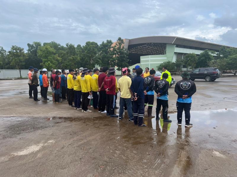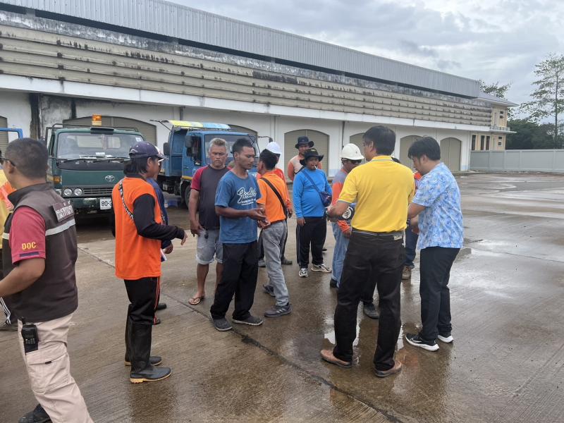 เทศบาลเมืองตราด ประชุมกำลังพลก่อนปล่อยแถวออกปฏิบัติการเร่งเก็บขนขยะและของเสียหายจากเหตุอุทกภัย