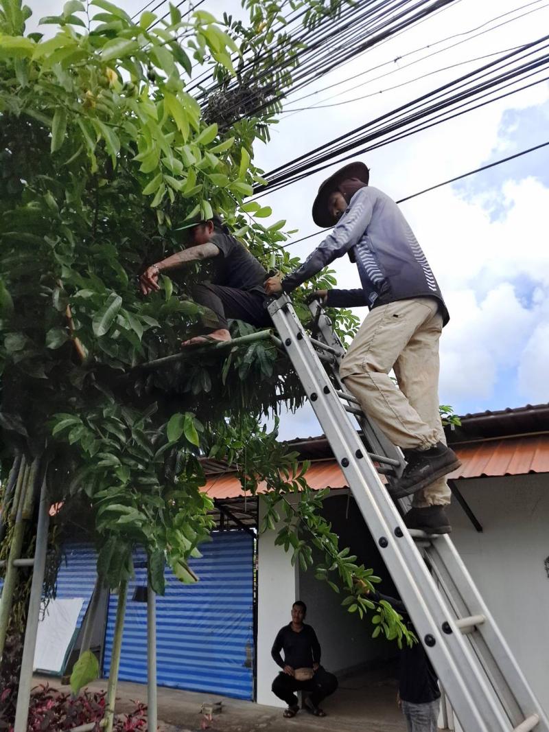 • **งานสนับสนุน:** ตัดกิ่งไม้รอบโบสถ์วัดไผ่ล้อม ร่วมกับช่างไฟฟ้าและชุดป้องกัน