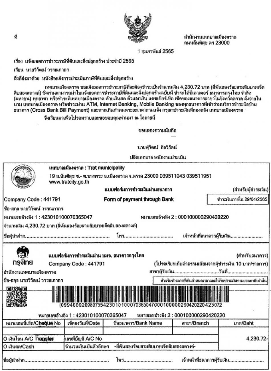 ช่องทางการชำระภาษีทุกประเภทของเทศบาลเมืองตราด